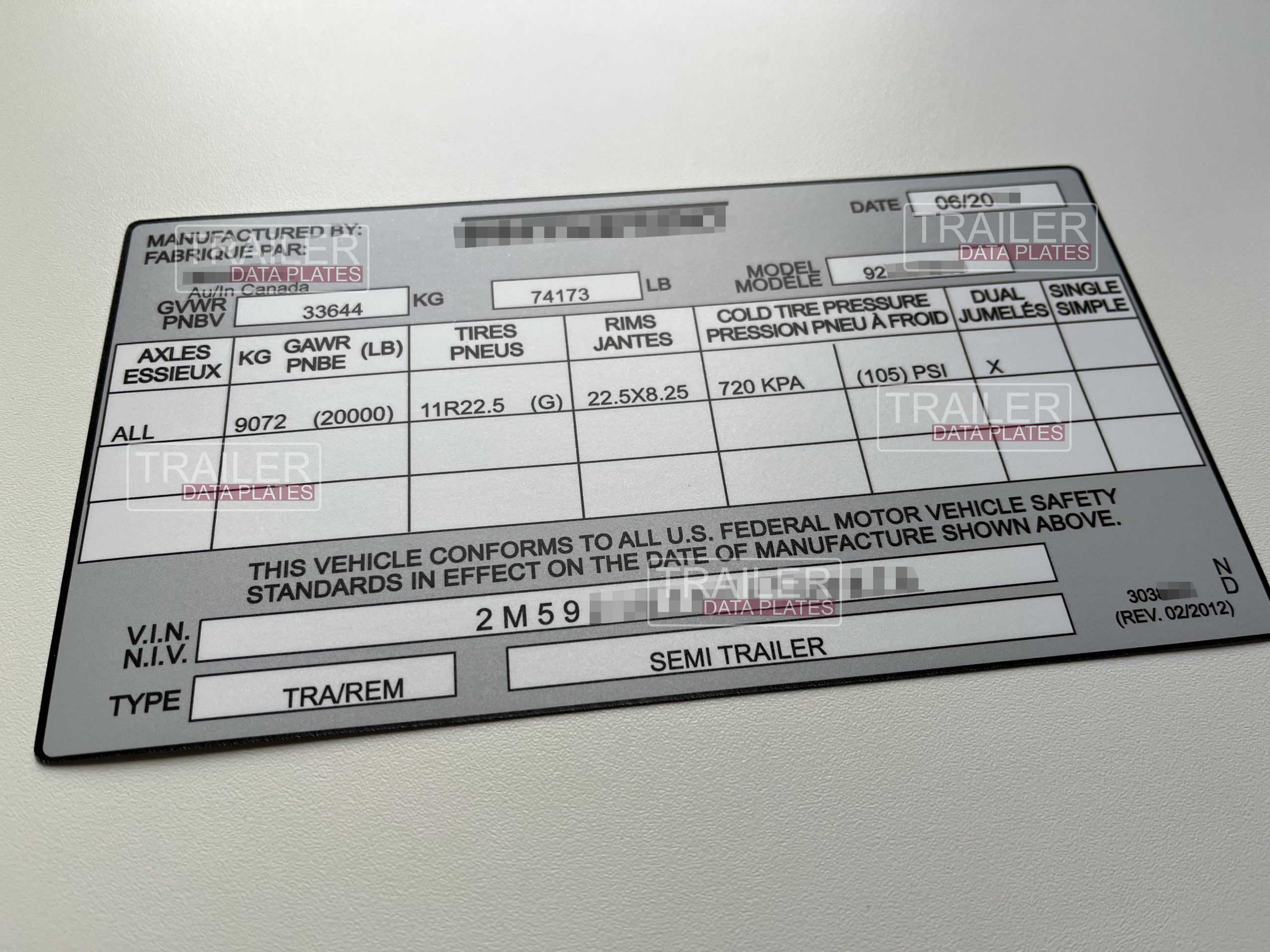Manac Dry Van Trailer Data Decal Sticker VIN ID Tag Reproduction CUSTOM